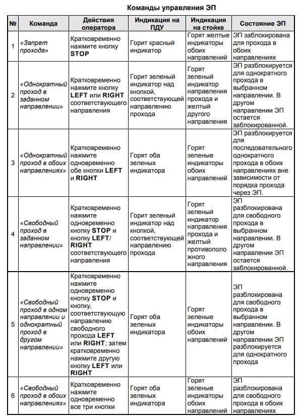• После команды «Однократный проход в заданном направлении» может быть подана команда «Свободный проход в заданном направлении» для этого же направления или команда «Запрет прохода».