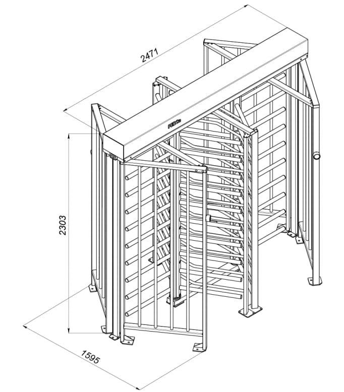 PERCo-RTD-16. Турникет используется в качестве двух независимых управляемых преграждающих устройств, предназначенных для контроля прохода людей на пропускных пунктах объектов с повышенными требованиями к безопасности и необходимостью полного перекрытия зон прохода по высоте.