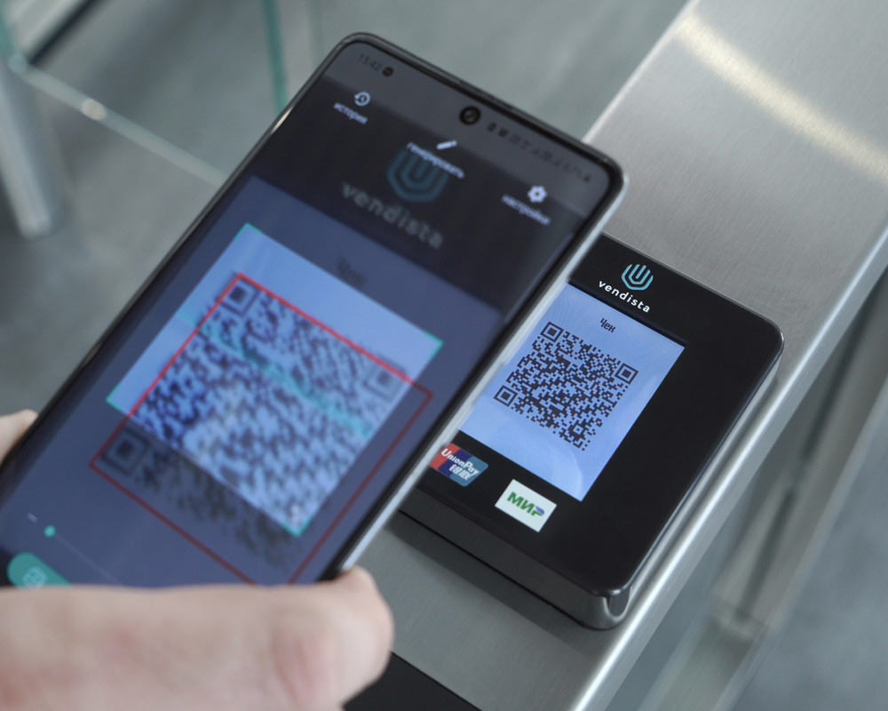 • Платежный терминал Vendistа позволяет после оплаты вывести чек по операции в виде QR-кода с ссылкой на электронный чек. Это позволяет сэкономить на принтере чековой ленты и его расходниках, а также обеспечивает более высокую пропускную способность проходной. При необходимости получения бумажного чека, либо клиент самостоятельно, либо оператор, предоставляющий услугу, могут распечатать его на любом офисном принтере.