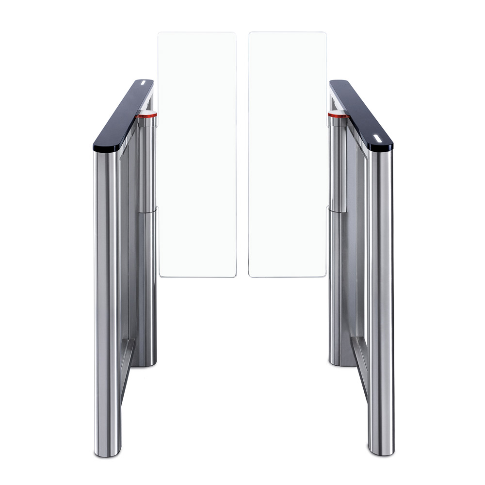 Увеличенная ширина прохода позволяет организовать проезд маломобильных групп населения, а также дополнительный выход в случае чрезвычайной ситуации. При проходе створки турникета распахиваются.
