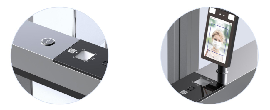 • Интеграция с терминалами распознавания лиц, температуры и определения наличия маски